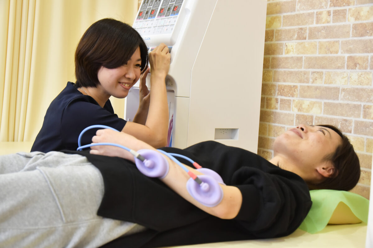 鹿児島市のまつもと石谷整骨院ではテニス肘の原因になっている前腕の筋肉の緊張を取り除くソフト整体を行います。痛みが強い場合は炎症が起きている可能性が高いため、微弱電流を流す物理療法治療器で炎症の緩和や腫れの抑制をしていきます。また肘の関節の骨のずれや筋肉のバランスを調整していくことで根本的な痛みをとっていきます。